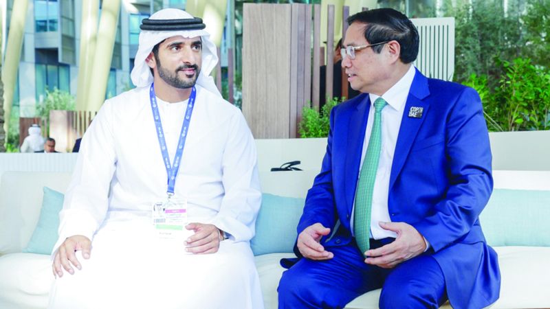 كما التقى سمو ولي عهد دبي عدداً من رؤساء الوفود المشاركة في مؤتمر الأطراف «كوب 28»، خلال الاستقبال الرسمي الذي تم تنظيمه أمس، للترحيب بملوك ورؤساء الدول والحكومات وقيادات الهيئات والمنظمات الدولية المشاركين في المؤتمر، حيث أعرب سموه عن ترحيبه بجميع ضيوف الدولة، وتمنياته لهم التوفيق في تحقيق الأهداف الاستراتيجية المرجوة من هذا التجمّع العالمي الذي يُعد الأهم في مجال العمل المناخي.
