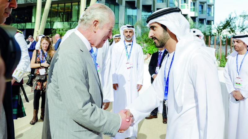 وأكد سموه خلال اللقاء بالغ ترحيبه بصاحب الجلالة الملك تشارلز الثالث، وذلك بحضور سمو الشيخ مكتوم بن محمد بن راشد آل مكتوم، النائب الأول لحاكم دبي نائب رئيس مجلس الوزراء وزير المالية، مثمّناً مشاركة جلالته المهمة في أعمال مؤتمر الأطراف، ومنوّهاً بجهوده في مجال العمل المناخي، وحرصه على دعوة العالم للتحرك من أجل معالجة الأضرار الناجمة عن التغيرات المناخية على الصعيد البيئي، ومن ثم على المستوى الاقتصادي، مؤكداً سموه تطابق وجهات النظر بين دولة الإمارات والمملكة المتحدة في هذا الشأن، في ضوء رؤية مشتركة هدفها تحفيز تحرك عالمي فعّال لاتخاذ إجراءات حاسمة وسريعة من شأنها تحقيق مستقبل مستدام لكوكب الأرض.