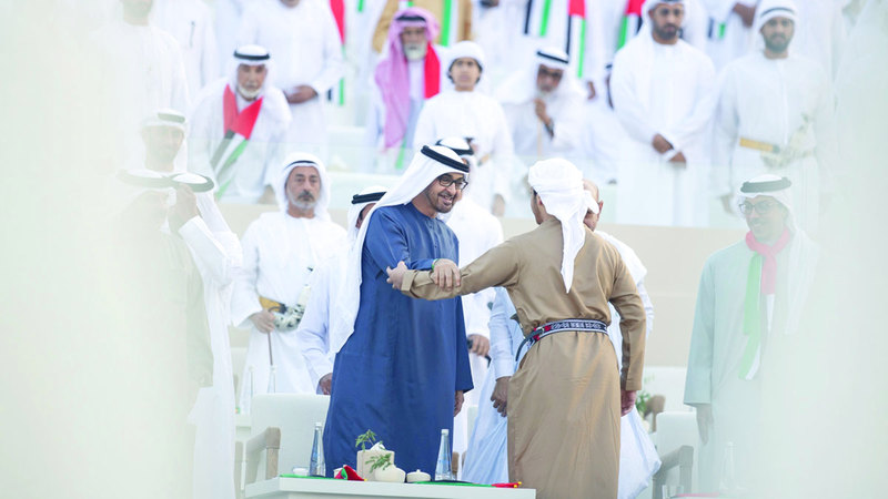 رئيس الدولة والشيوخ والضيوف يشهدون «مسيرة الاتحاد» لأبناء القبائل بمناسبة عيد الاتحاد الـ 52