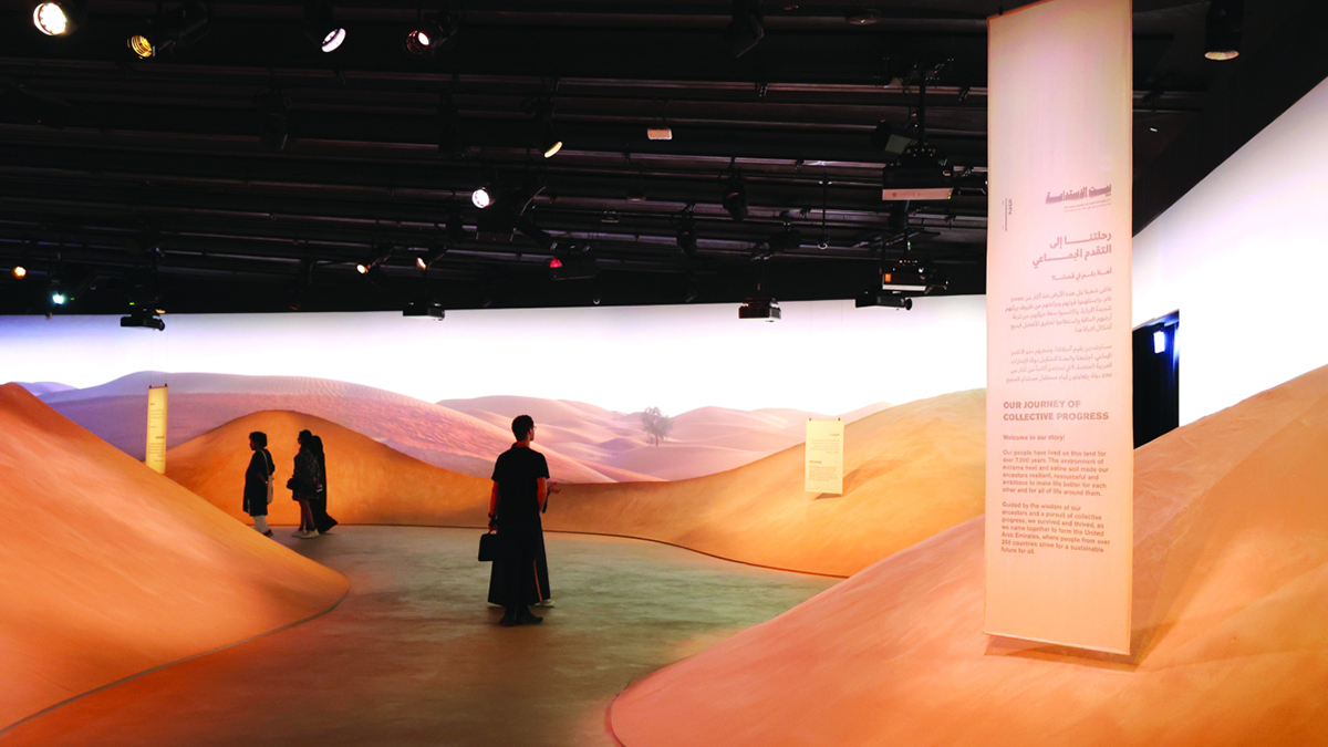 وينتقل الزوار بعدها لتجربة محاطة بالكثبان الرملية عبر رحلة الإمارات إلى التقدم الجماعي والتي تروي قصة اليازية في مسرح مقبب بزاوية 300 درجة يتميز بعرض واسع ومؤثرات صوتية مكانية.