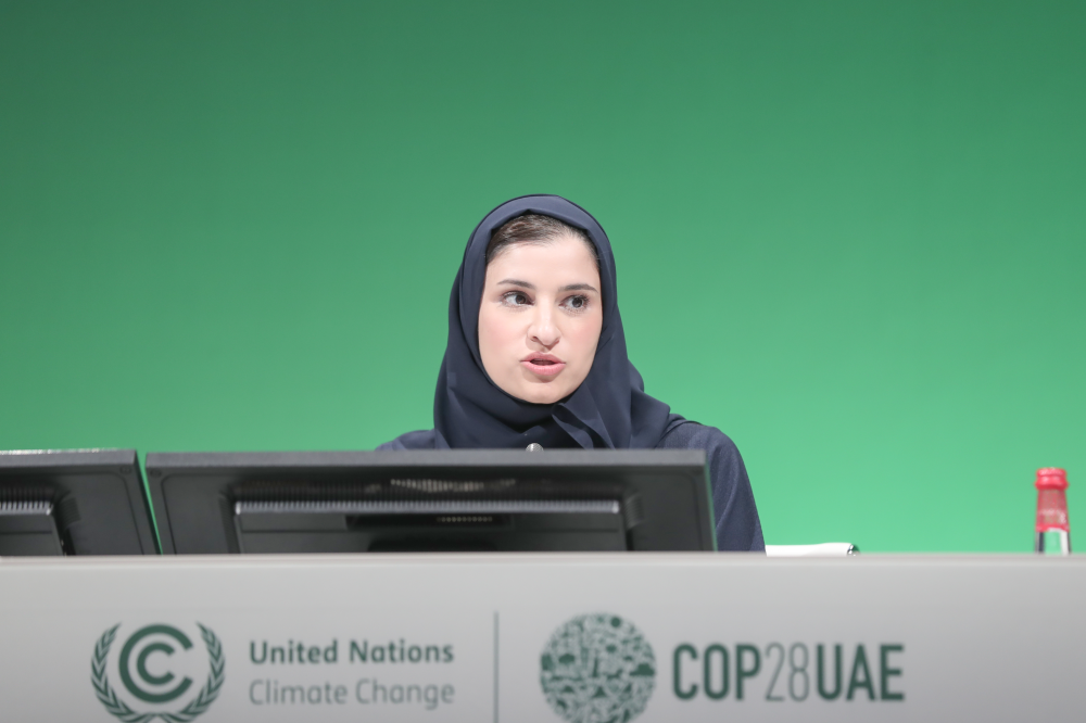 وقالت وزيرة دولة للتعليم العام والتكنولوجيا المتقدمة سارة بنت يوسف الأميري: "على مدار 3 عقود قدمت دولة الإمارات بفضل الرؤية الحكيمة للقيادة الرشيدة، نموذجاً عالمياً رائداً في جهود العمل المناخي على المستوى الإقليمي والدولي، وكانت الإمارات في مقدمة دول المنطقة للتوقيع على اتفاق باريس للمناخ 2015، والدولة الأولى التي أعلنت مبادرة استراتيجية لتحقيق الحياد المناخي بحلول2050، واليوم ومن خلال (COP28) تستمر جهودنا بإطلاق مسار وطني شامل لخفض الكربون بشكل تدريجي ومرحلي، وصولاً للحياد المناخي بمشاركة كافة القطاعات".