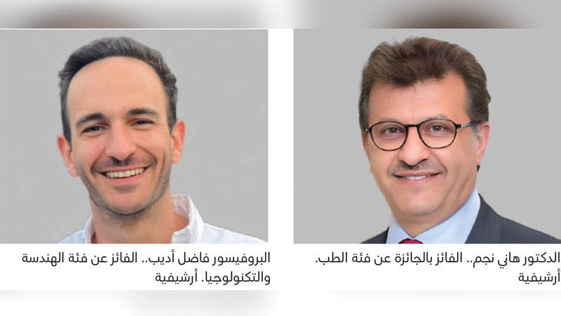 وتشهد الاحتفالية تكريم كل من الدكتور هاني نجم الفائز بالجائزة عن فئة الطب، والبروفيسور فاضل أديب فائزاً عن فئة الهندسة والتكنولوجيا، والدكتور محمد العريان الذي حاز جائزة «نوابغ العرب» عن فئة الاقتصاد، والبروفيسورة نيفين خشاب الفائزة بالجائزة عن فئة العلوم الطبيعية، والمهندسة المعمارية لينا الغطمة الفائزة بالجائزة عن فئة العمارة والتصميم، والبروفيسور واسيني الأعرج الفائز بـ«نوابغ العرب» عن فئة الأدب والفنون.