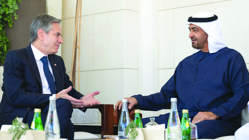 استقبل صاحب السموّ الشيخ محمد بن زايد آل نهيان، رئيس الدولة، حفظه الله، أمس، وزير خارجية الولايات المتحدة الأميركية، أنتوني بلينكن، الذي يزور الدولة.
