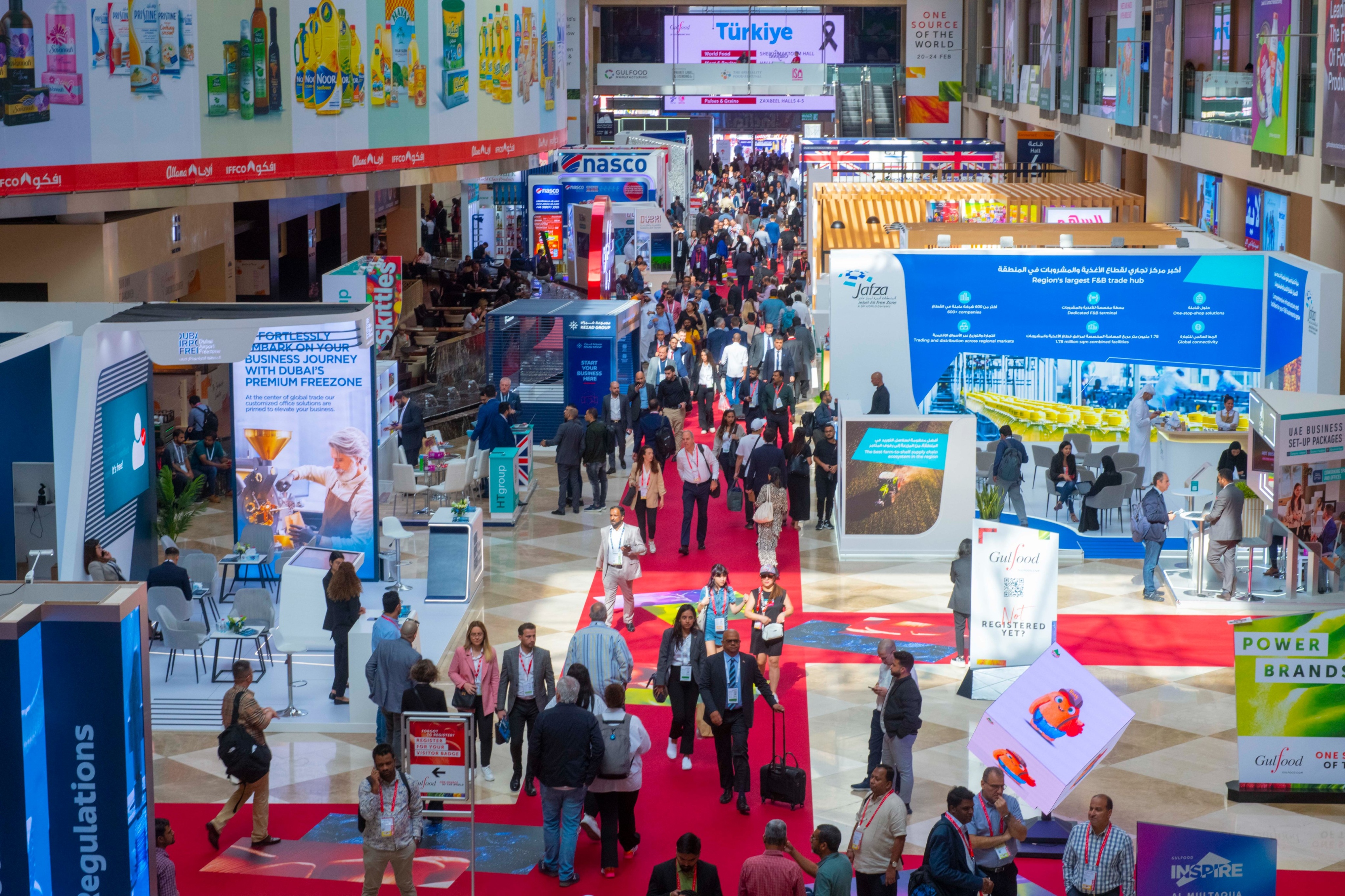 ينعقد معرض "جلفود" الأكبر والأكثر تأثيرًا في عالم المأكولات والمشروبات، وأحد أكبر الفعالية الرئيسية في مركز دبي التجاري العالمي في الفترة من 19 إلى 23 فبراير؛ ويغطّي هذا الحدث الاستثنائي على مدار خمسة أيام كل ما يتعلّق بصناعة الأغذية والمشروبات، والمنتجات والابتكارات؛ كما يوفر منصّة رائدة للتواصل وتبادل الأفكار وإنشاء علاقات عمل جديدة وتوقيع الصفقات والإعلان عن المنتجات والابتكارات الجديدة، وذلك على مساحة تزيد على المليون قدم مربعة.