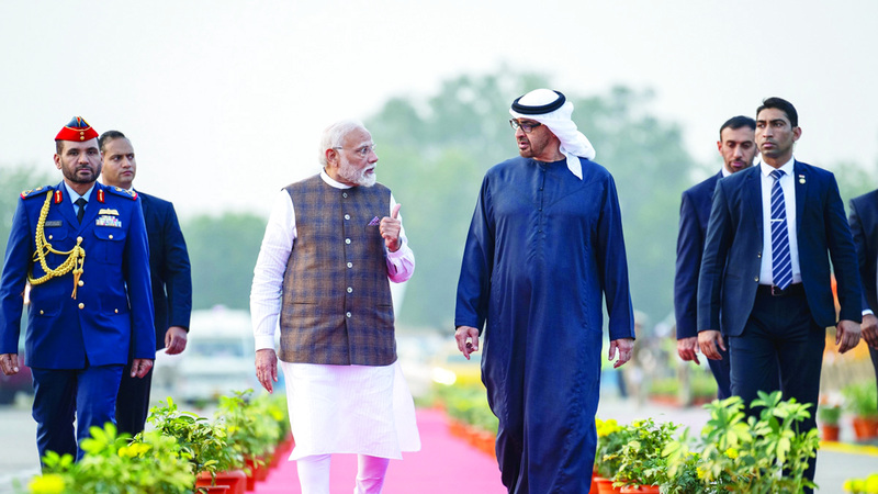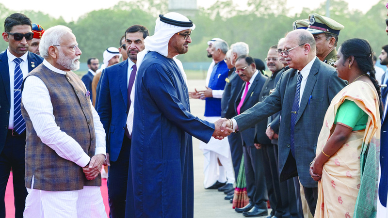 وكان صاحب السمو الشيخ محمد بن زايد آل نهيان، رئيس الدولة، حفظه الله، وصل أمس، إلى جمهورية الهند الصديقة في زيارة عمل بحث خلالها مع رئيس وزراء الهند، ناريندرا مودي، العلاقات الاستراتيجية بين البلدين وسبل تعزيزها وتوسيع آفاقها، خصوصاً على المستوى التنموي، إضافة إلى حضور سموه «قمة غوجارات النابضة بالحياة» العاشرة.