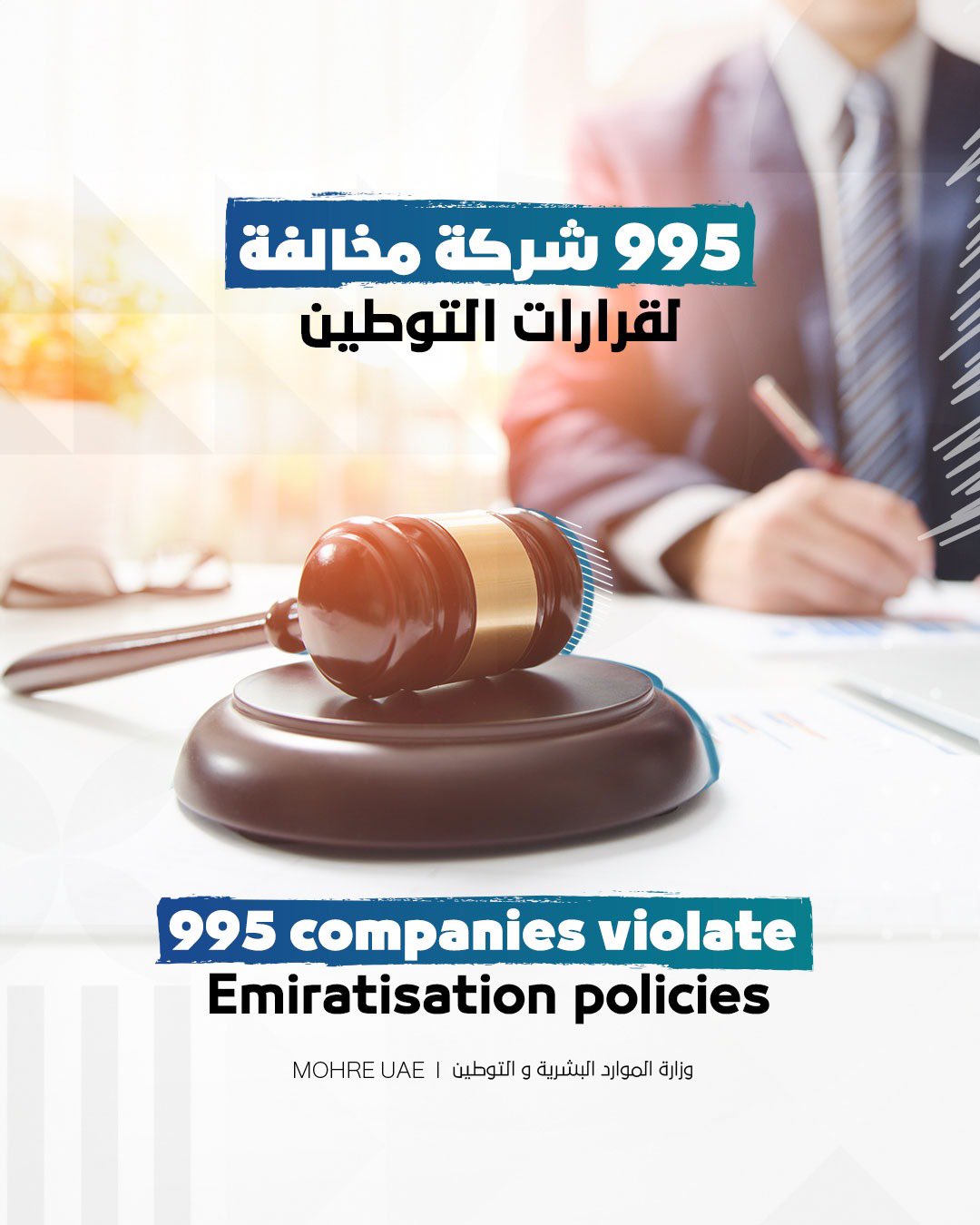 أعلنت وزارة الموارد البشرية والتوطين أن منظومتها الرقابية تمكنت من ضبط 995 شركة خاصة ثبت مخالفتها لقرارات التوطين من خلال محاولة التحايل على مستهدفات التوطين، والتوطين الصوري، وذلك منذ النصف الثاني لعام 2022 حتى اليوم، موضحة أن إجمالي عدد حالات التوطين الصوري التي تم إثباتها بلغ 1660 حالة.
