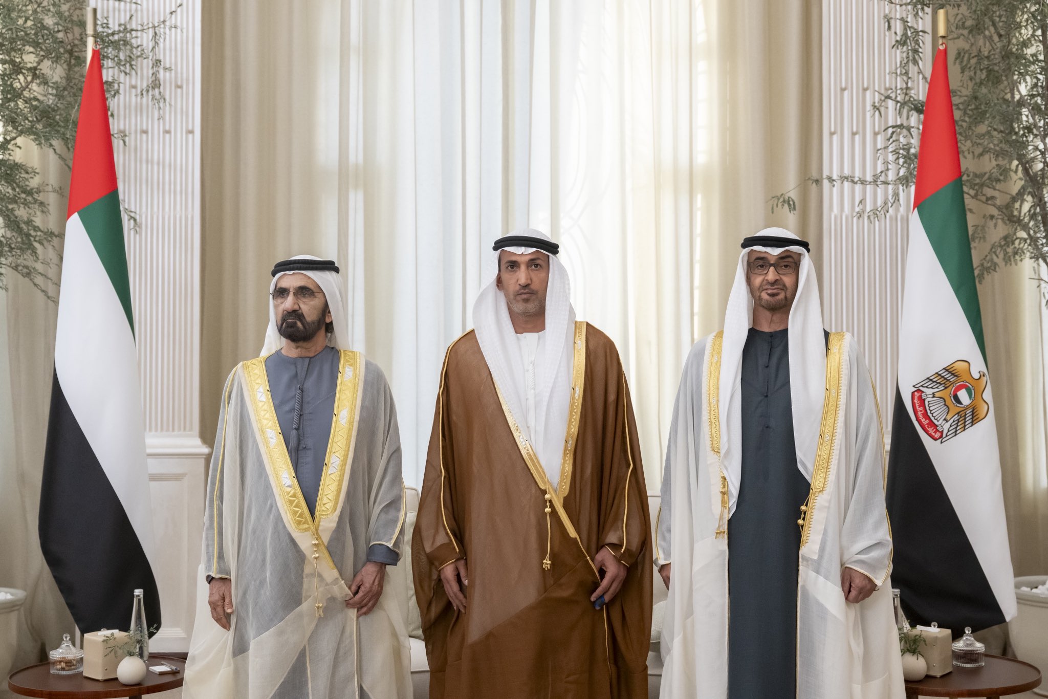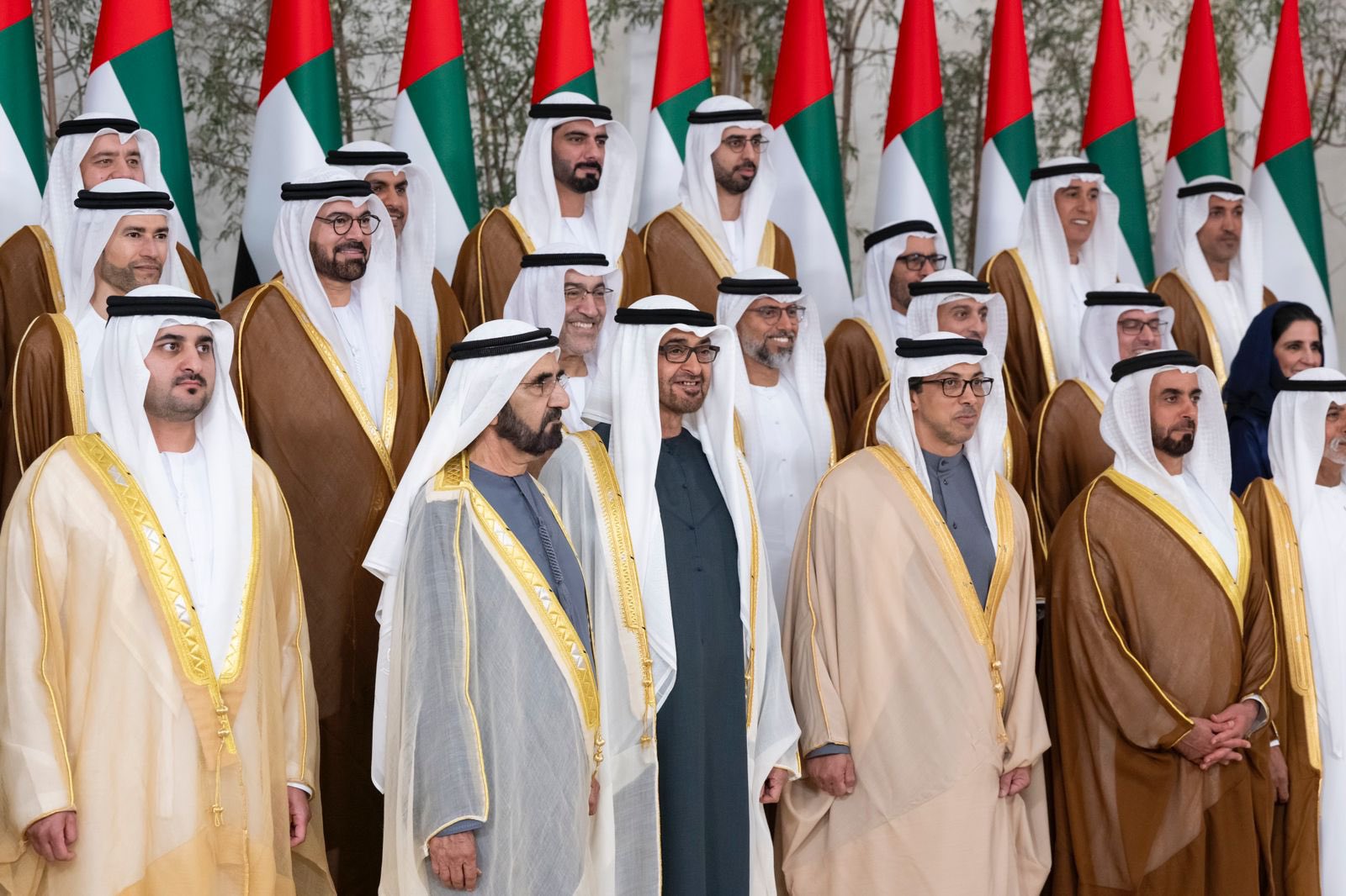 شهد صاحب السمو الشيخ محمد بن زايد آل نهيان رئيس الدولة "حفظه الله"، وصاحب السمو الشيخ محمد بن راشد آل مكتوم نائب رئيس الدولة رئيس مجلس الوزراء حاكم دبي "رعاه الله"، اليوم، أداء اليمين الدستورية للوزراء الجدد في حكومة الإمارات.