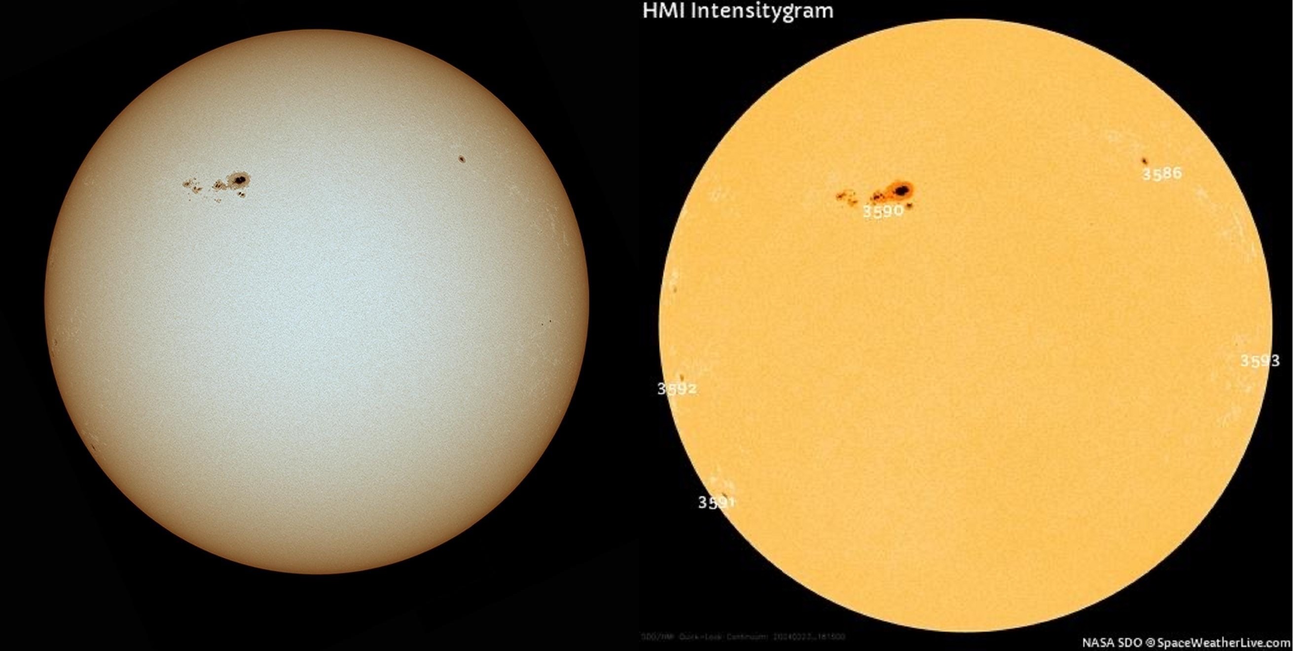 وأوضحت أن البقع الشمسية هي بقع على سطح الشمس -الغلاف الضوئي - وتتميز بدرجة حرارة منخفضة عن المناطق المحيطة بها وبنشاط مغناطيسي مكثف يمنع حمل الحرارة مكونا مناطق ذات حرارة سطحية منخفضة.