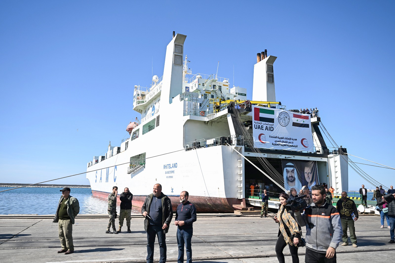 إلى ذلك استقبل وفد الهلال الأحمر خلال زيارته لسوريا سفينة مساعدات تحمل 196 طنا من المعدات والأجهزة الطبية وعدد من الحافلات إضافة إلى طائرة حملت على متنها مساعدات طبية وأدوية لدعم القطاعين الحكومي والطبي.