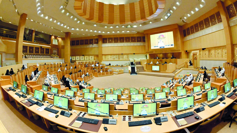 يناقش المجلس الوطني الاتحادي، خلال جلسته المقرر انعقادها اليوم الأربعاء، موضوع «سياسة الحكومة بشأن معايير وبرامج مِنَح الزواج»، وبرامج تأهيل المقبلين على الزواج، بينما تعتزم النائب الثاني لرئيس المجلس الوطني الاتحادي، مريم ماجد بن ثنيّة، توجيه سؤال برلماني لوزير التربية والتعليم، تكشف خلاله مخالفة جامعات ومدارس لقرار وزاري بشأن إلغاء إلزامية اختبارات «إمسات» كشرط للقبول، كما تشهد الجلسة موافقة المجلس على إرسال 24 توصية برلمانية لمجلس الوزراء، لاتخاذ ما يلزم بشأنها، وإحاطة المجلس علماً بذلك، بينها 13 توصية حول «سياسة الحكومة بشأن الأمن المائي»، و11 توصية حول «سياسة الحكومة بشأن تعزيز مشاركة المواطنين في القطاع الصحي»