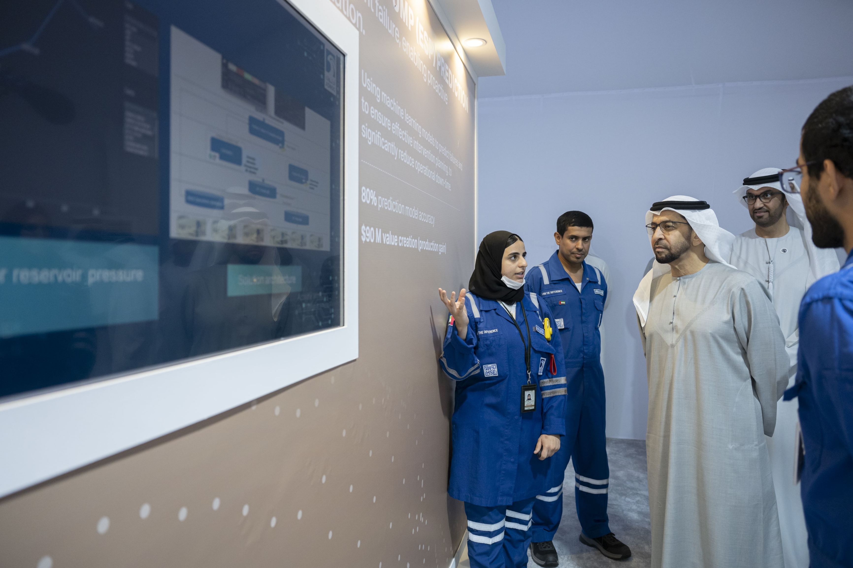 وتعرف سموّه على أبرز تقنيات وأدوات الذكاء الاصطناعي والتكنولوجيا المتقدمة التي تستخدمها "أدنوك" في مراقبة التشغيل وعمليات الإنتاج في الحقل، الذي يعتبر من أكبر حقول الإنتاج البرية في الدولة وأحد أكبر 20 حقل نفط على مستوى العالم من حيث حجم الاحتياطات النفطية المؤكدة، وذلك بما يتضمن استخدام الحلول الرقمية للآبار وتقنيات العمليات المستقلة والمراقبة عن بعد، وتطوير أول نظام للتحكم المتقدم في العمليات قائم على الذكاء الاصطناعي بالتعاون مع شركة AIQ، واستخدام تقنية الطائرات من دون طيار المصنوعة في الدولة للكشف عن التسربات المحتملة لغازات الدفيئة، وإجراء عمليات تفتيش دقيقة للموقع والبنى التحتية، واستخدام المضخات الغاطسة الكهربائية المتصلة بأدوات الذكاء الاصطناعي للمساهمة في تقليل فترة وقف التشغيل ورفع كفاءة العمليات.