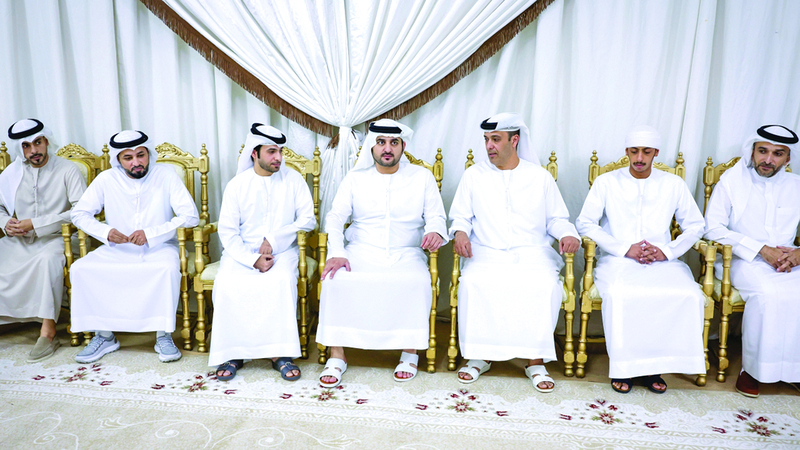 مكتوم بن محمد خلال تقديمه واجب العزاء. وام