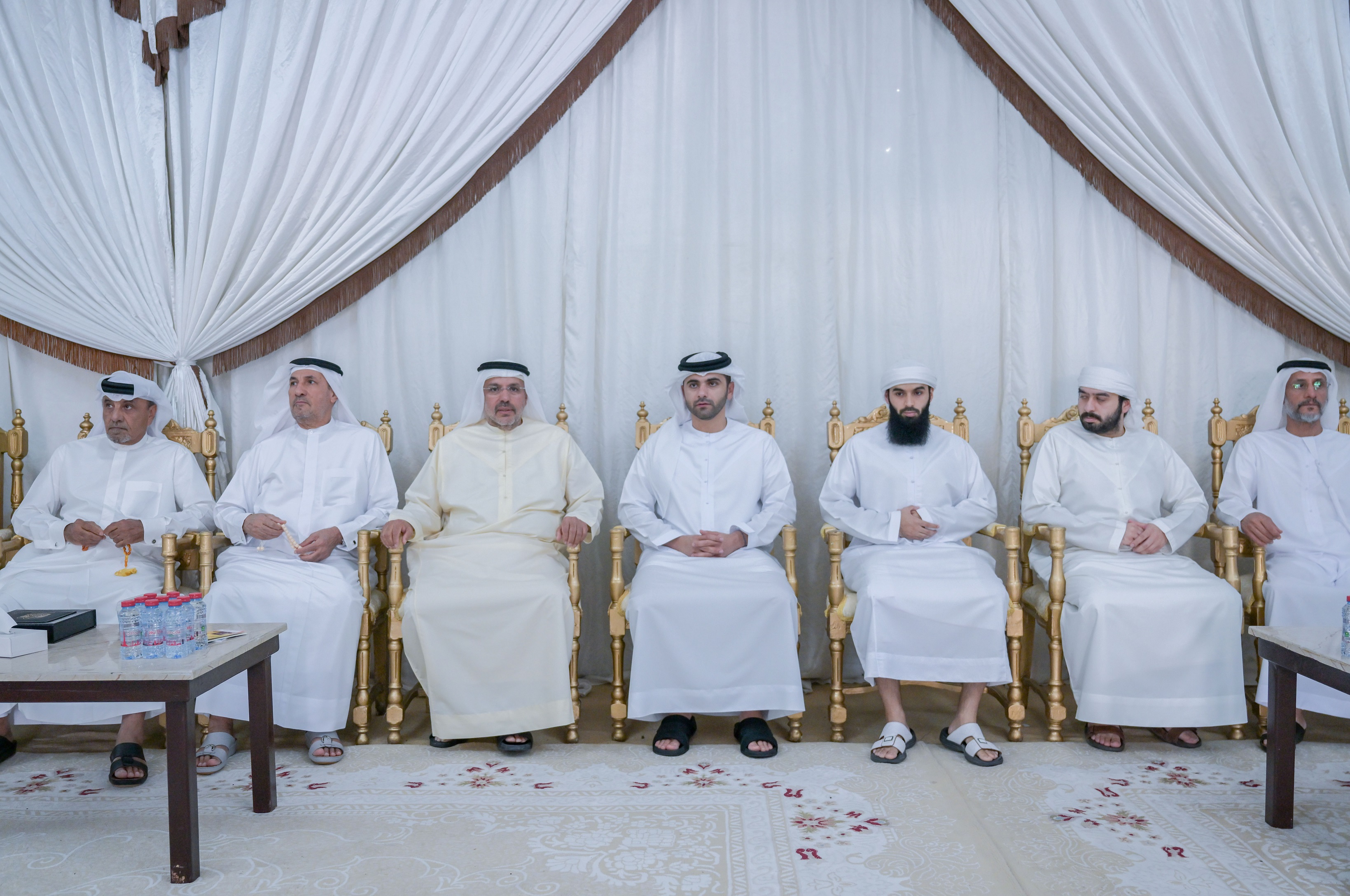 قدّم سمو الشيخ منصور بن محمد بن راشد آل مكتوم، رئيس مجلس دبي الرياضي، اليوم (الثلاثاء)، واجب العزاء في وفاة المغفور له بإذن الله تعالى خالد عبيد أحمد عبيد المطيوعي، وذلك خلال زيارة سموه إلى مجلس العزاء في دبي.