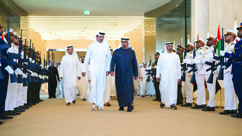 وكان صاحب السمو الشيخ محمد بن زايد آل نهيان، رئيس الدولة، حفظه الله، في مقدمة مستقبلي أخيه صاحب السمو الشيخ تميم بن حمد آل ثاني، لدى وصوله والوفد المرافق إلى مطار الرئاسة في أبوظبي.