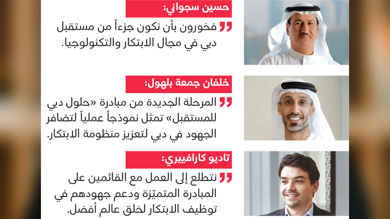 وأكد الرئيس التنفيذي لمؤسسة دبي للمستقبل، خلفان جمعة بلهول، أن المرحلة الجديدة من مبادرة «حلول دبي للمستقبل» تمثل نموذجاً عملياً لتضافر الجهود في دبي لتعزيز منظومة الابتكار انسجاماً مع رؤية وتوجيهات القيادة بترسيخ مكانة دبي مركزاً للابتكار العالمي وحاضنةً لأفضل العقول والمواهب في مختلف قطاعات المستقبل. وقال: «ستفتح هذه المرحلة آفاقاً جديدة لاستقطاب أفضل العقول وأكثر الأفكار ابتكاراً وتأثيراً إلى دبي بالشراكة مع المؤسسات الأكاديمية والمبتكرين من حول العالم. وتؤكد مساهمة مؤسسة حسين سجواني - داماك الخيرية في دعم هذه المبادرة، أهمية التكامل بين القطاعين الحكومي والخاص في دبي، ودور القطاع الخاص في تعزيز منظومة الابتكار ورؤية دبي».