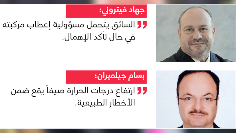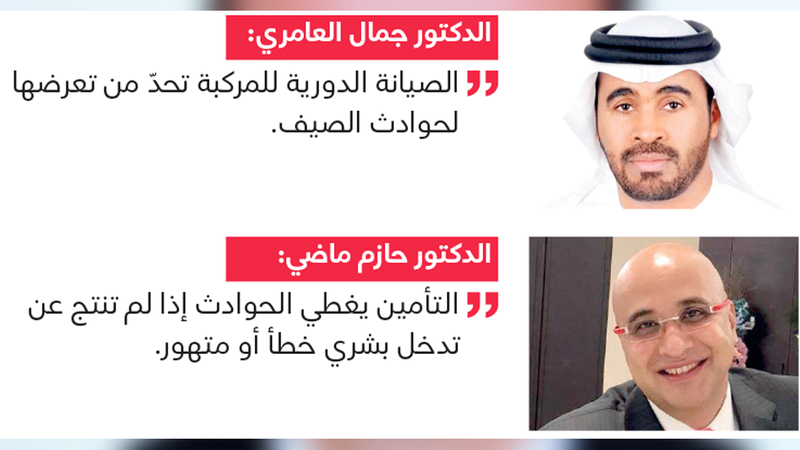 وتابع أن «الأمر يمتد أيضاً بالنسبة للسائقين الذين يتركون عمداً مواد أو أدوات خطرة قابلة للاشتعال داخل المركبة، خلال الصيف، وتتسبب في حوادث انفجار وحرائق للمركبات، فهنا يتحمل مالكها المسؤولية نتيجة إهماله، وإسهامه بصورة غير مباشرة في وقوع الحادث، لاسيما أن الجهات المعنية في الدولة أصدرت تنبيهات وتحذيرات عدة من ترك هذه المواد داخل المركبة، خصوصاً خلال الصيف ومع ارتفاع درجات الحرارة».