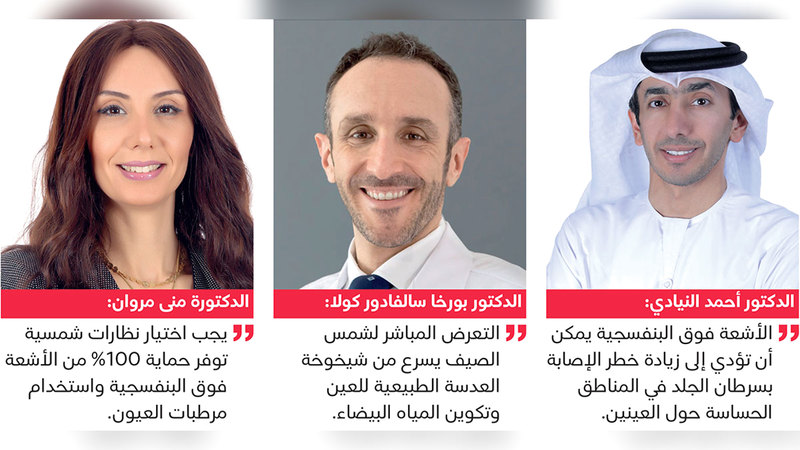 وأضاف أن «التعرض المفرط للأشعة فوق البنفسجية يمكن أن يتسبب في أضرار دائمة للعين، لهذا يجب علينا أن نتخذ خطوات وقائية لحماية أعيننا على مدار العام، وليس فقط في الأشهر الحارة».