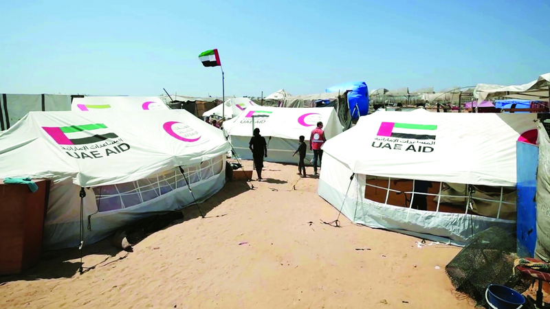 الإمارات توفر خيام إيواء لعائلات فلسطينية في خانيونس
