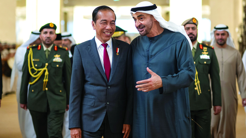 وكان صاحب السمو الشيخ محمد بن زايد آل نهيان رئيس الدولة، حفظه الله، في مقدمة مستقبلي الرئيس الإندونيسي والوفد المرافق لدى وصوله إلى مطار الرئاسة في العاصمة أبوظبي.