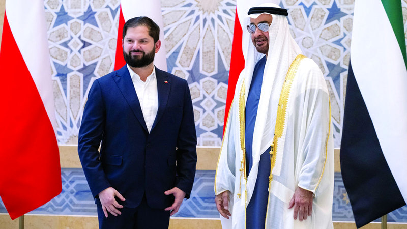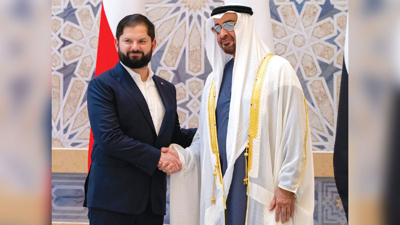 وكان رئيس جمهورية تشيلي غابرييل بوريك فونت، وصل أمس، إلى أبوظبي في زيارة رسمية إلى دولة الإمارات.