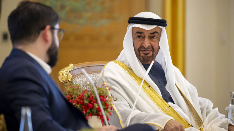 وبحث صاحب السمو الشيخ محمد بن زايد آل نهيان، رئيس الدولة، حفظه الله، ورئيس جمهورية تشيلي، غابرييل بوريك فونت، مختلف جوانب علاقات دولة الإمارات وتشيلي، خاصة تعاونهما المشترك في المجالات التجارية والاستثمارية والتنموية، وفرص تطويرها بما يخدم رؤى البلدين نحو المستقبل، ويسهم في استدامة التنمية والازدهار لشعبيهما.