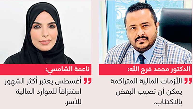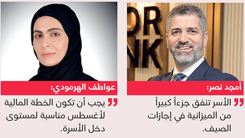 وأكدت الخبيرة المصرفية عواطف الهرمودي أن شهر أغسطس يعد الأصعب بالنسبة إلى كثير من الأسر، نتيجة استنزاف إجازة الصيف الموارد المالية، وحاجة الأسرة إلى تدبير نفقات بداية العام الدراسي، وتأمين المتطلبات المالية الأخرى، المرتبطة بتجديد عقود الإيجار. ولفتت إلى ضرورة وضع الأسرة خطة مالية تتناسب مع دخلها، على أن تضع في الاعتبار الأوقات التي تشهد زيادة في النفقات المالية، للاستعداد لها، من خلال تخصيص مبالغ شهرية، تجنباً لمواجهة الأزمات المالية.