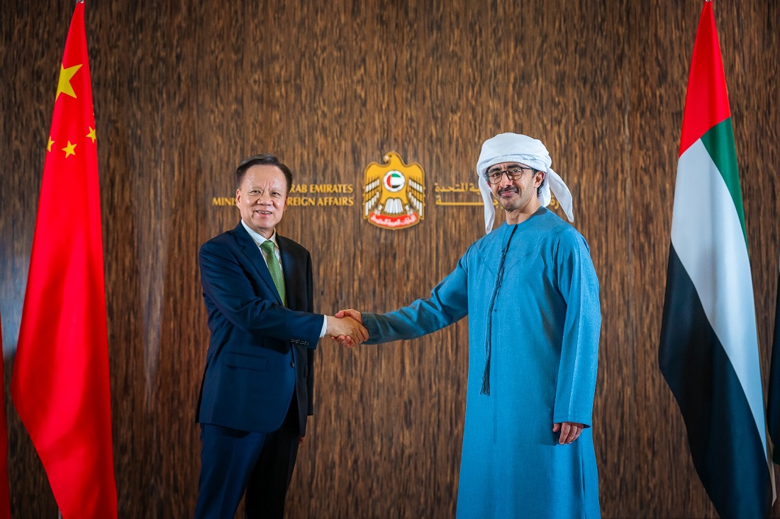 عبدالله بن زايد يستقبل عضو المكتب السياسي للجنة المركزية للحزب الشيوعي الصيني
