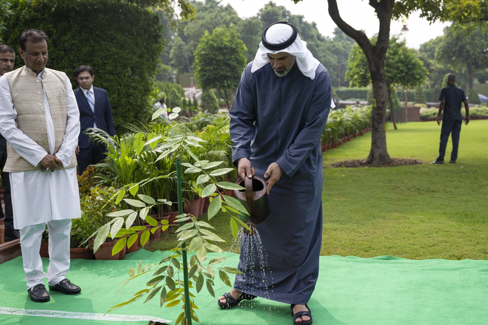 وتوجّه سموّه إلى ساحة الحديقة، حيث قام بسقي شجرتي الصداقة، الأولى التي غرسها الوالد المؤسِّس المغفور له الشيخ زايد بن سلطان آل نهيان "طيَّب الله ثراه" في عام 1975، والثانية التي غرسها صاحب السموّ الشيخ محمد بن زايد آل نهيان، رئيس الدولة "حفظه الله" في عام 2016، خلال زيارتيهما جمهورية الهند الصديقة.