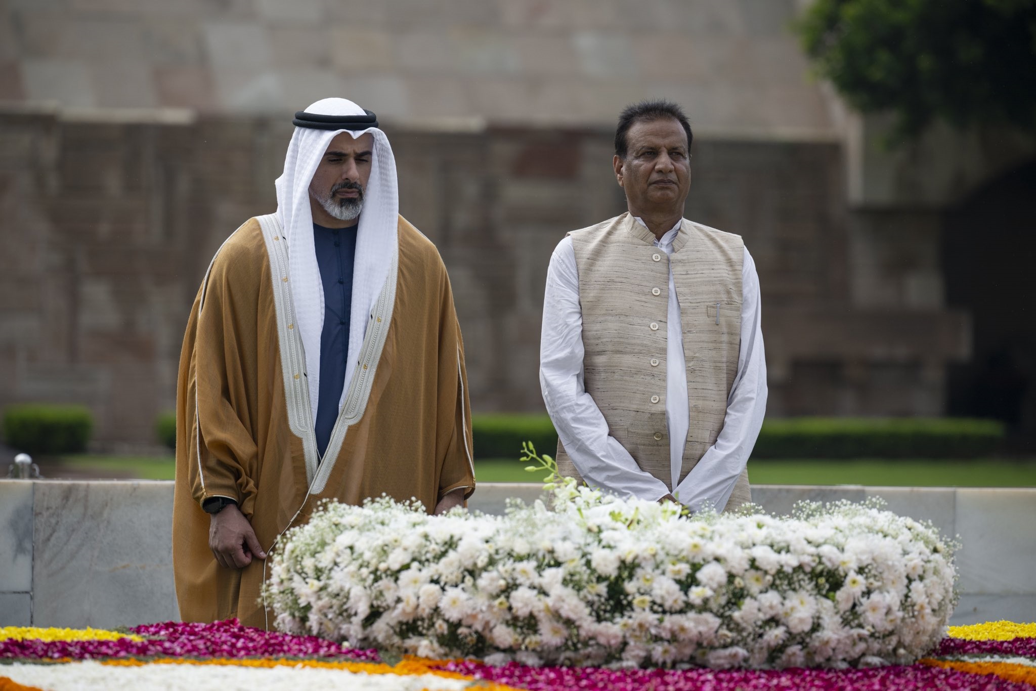 زار سموّ الشيخ خالد بن محمد بن زايد آل نهيان، ولي عهد أبوظبي، ضريح الزعيم الهندي الراحل المهاتما غاندي في منطقة راج غات في العاصمة الهندية نيودلهي.