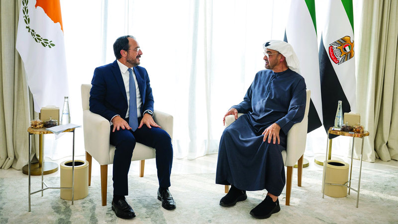 بحث صاحب السمو الشيخ محمد بن زايد آل نهيان، رئيس الدولة، حفظه الله، ورئيس جمهورية قبرص، نيكوس خريستودوليدس، مختلف جوانب التعاون بين البلدين وفرص تعزيز علاقاتهما الاستراتيجية، خصوصاً في المجالات الاقتصادية والتنموية، بما يخدم مصالحهما المشتركة.