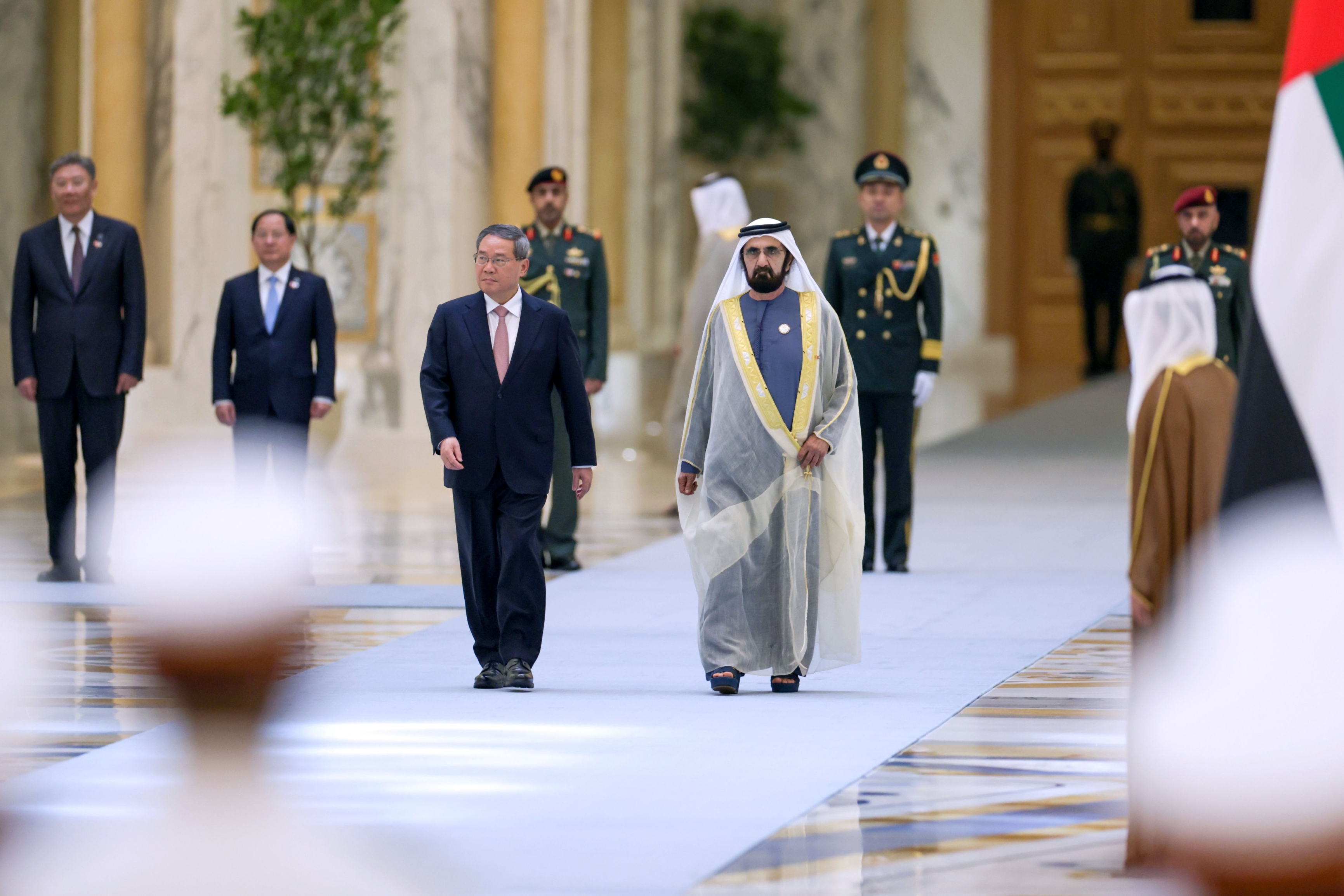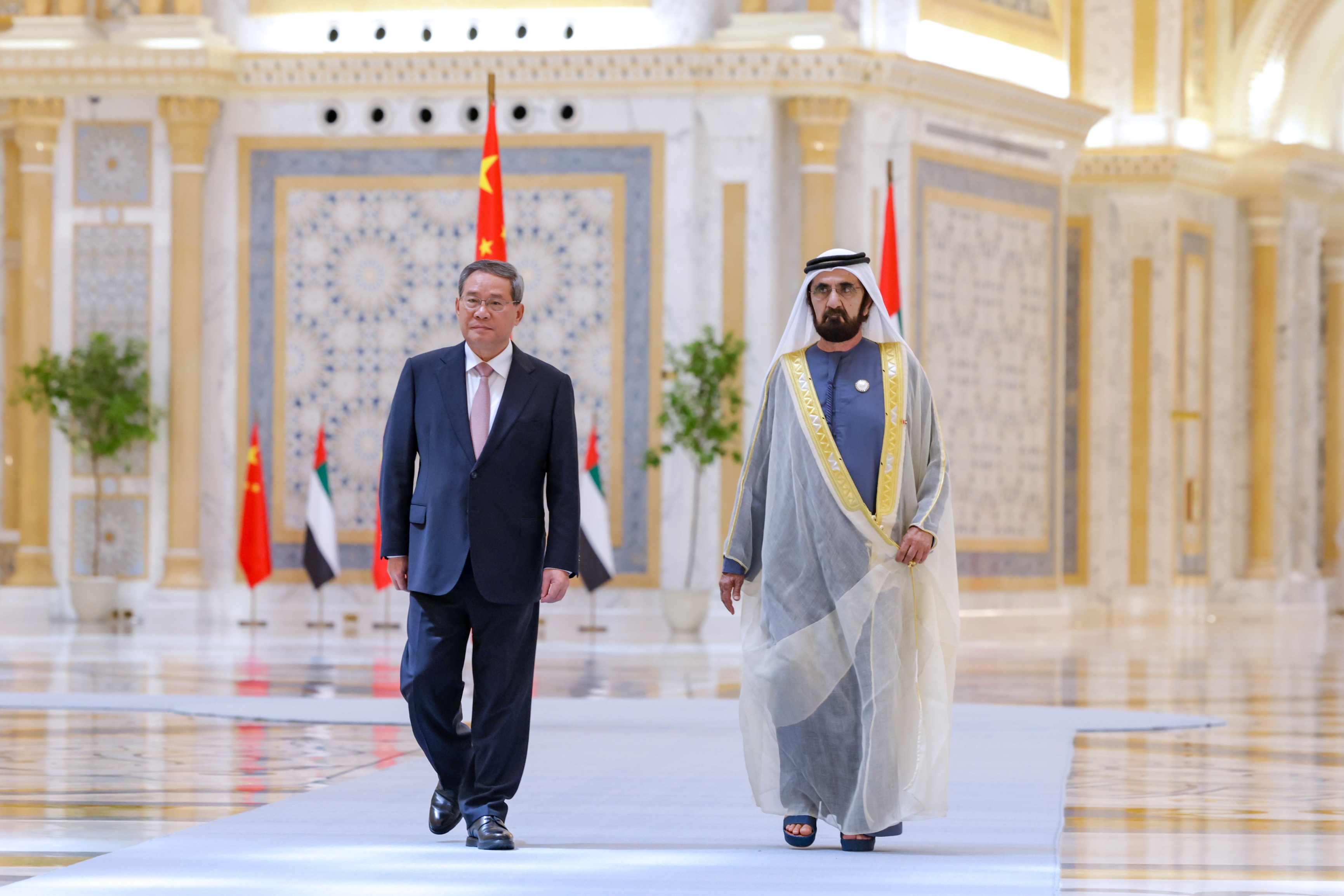 استقبل صاحب السمو الشيخ محمد بن راشد آل مكتوم، نائب رئيس الدولة رئيس مجلس الوزراء حاكم دبي، رعاه الله، معالي لي تشيانغ، رئيس مجلس الدولة في جمهورية الصين الشعبية الصديقة، الذي يقوم بزيارة رسمية إلى الدولة على رأس وفد رفيع المستوى.