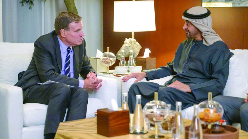 وتناول صاحب السموّ الشيخ محمد بن زايد آل نهيان، خلال لقاءاته، رؤية البلدين المشتركة التي ترتكز على أهمية تحقيق الأمن والاستقرار والسلام، وتعزيز قيم التعاون والتعايش في منطقة الشرق الأوسط والعالم أجمع، ونبذ التطرف والعنف والإرهاب والعمل معاً لمواجهته، مؤكداً سموّه في هذا السياق دعم دولة الإمارات للمبادرات والجهود الأميركية لوقف الحرب في قطاع غزة، وتطلعها إلى دور مؤثر من قبل الكونغرس في الدفع بهذا الاتجاه.