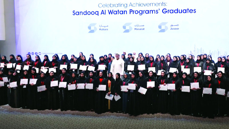 نظّم صندوق الوطن في أبوظبي احتفالاً برعاية الشيخ نهيان بن مبارك آل نهيان، وزير التسامح والتعايش، إضافة إلى الخبراء والمدربين وشركاء صندوق الوطن والرعاة، بمناسبة تخريج 700 مواطن، بينهم 330 في برنامج «جسور النخبة»، و280 في برنامج «مسارات»، و57 في برنامج «مهارة».