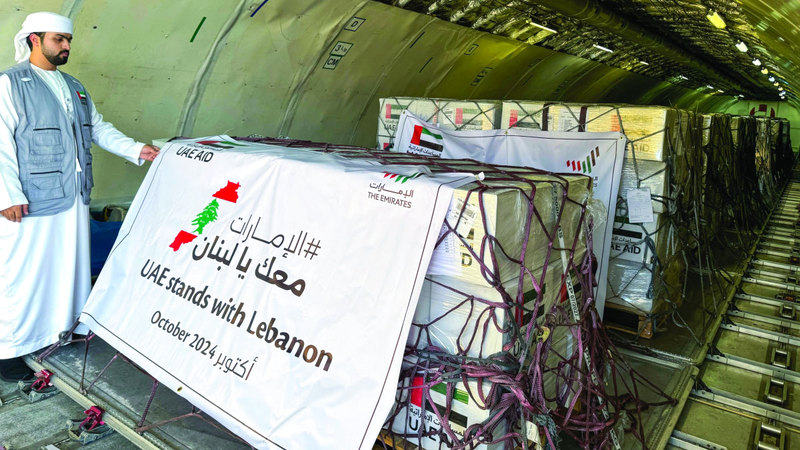 يُشار إلى أنه منذ إطلاق حملة «الإمارات معك يا لبنان» بلغ إجمالي المساعدات التي قدمتها دولة الإمارات للبنان 375 طناً من المواد الغذائية والمستلزمات الطبية ومواد الإيواء واحتياجات الطفل.