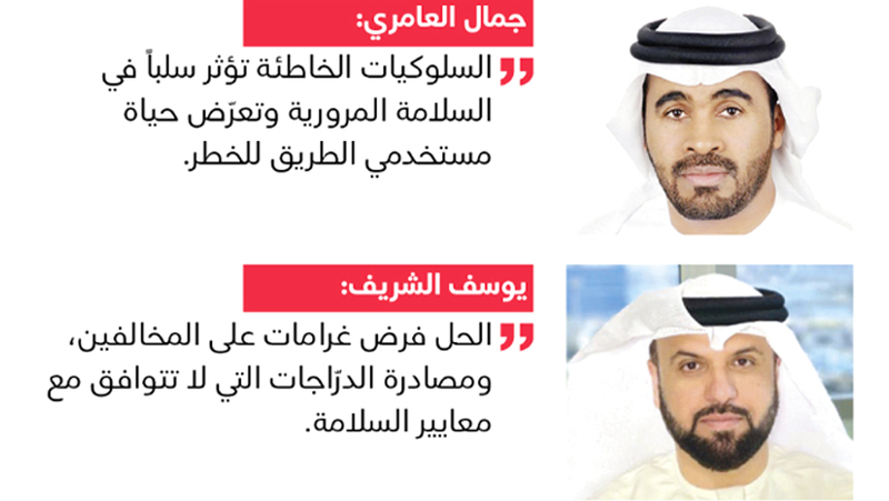 وقال العامري لـ«الإمارات اليوم»، إن مثل تلك السلوكيات تؤثر سلباً في السلامة المرورية، وتعرّض حياة مستخدمي الطريق من المشاة وسائقي المركبات للخطر.