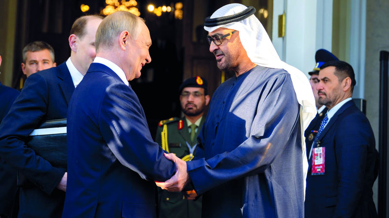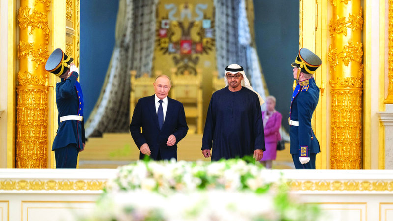 جاء ذلك خلال جلسة المحادثات التي عقدها صاحب السمو الشيخ محمد بن زايد آل نهيان والرئيس فلاديمير بوتين، أمس، في الكرملين، في إطار الزيارة الرسمية التي يقوم بها سموه إلى روسيا الاتحادية.