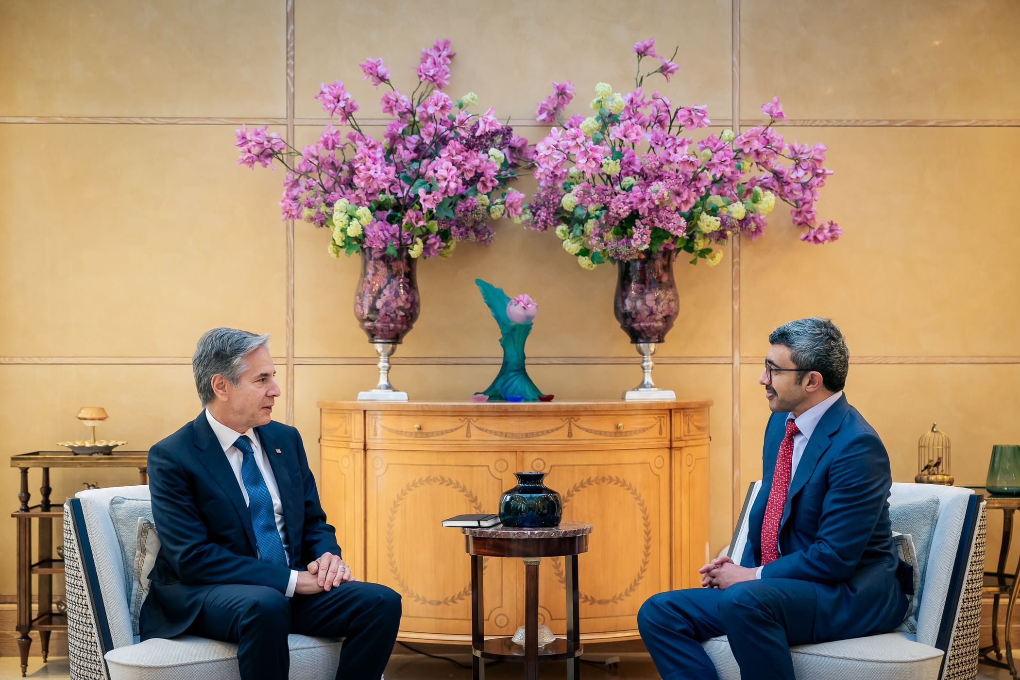 عبدالله بن زايد يلتقي أنتوني بلينكن ويبحثان العلاقات الاستراتيجية والتطورات بالمنطقة