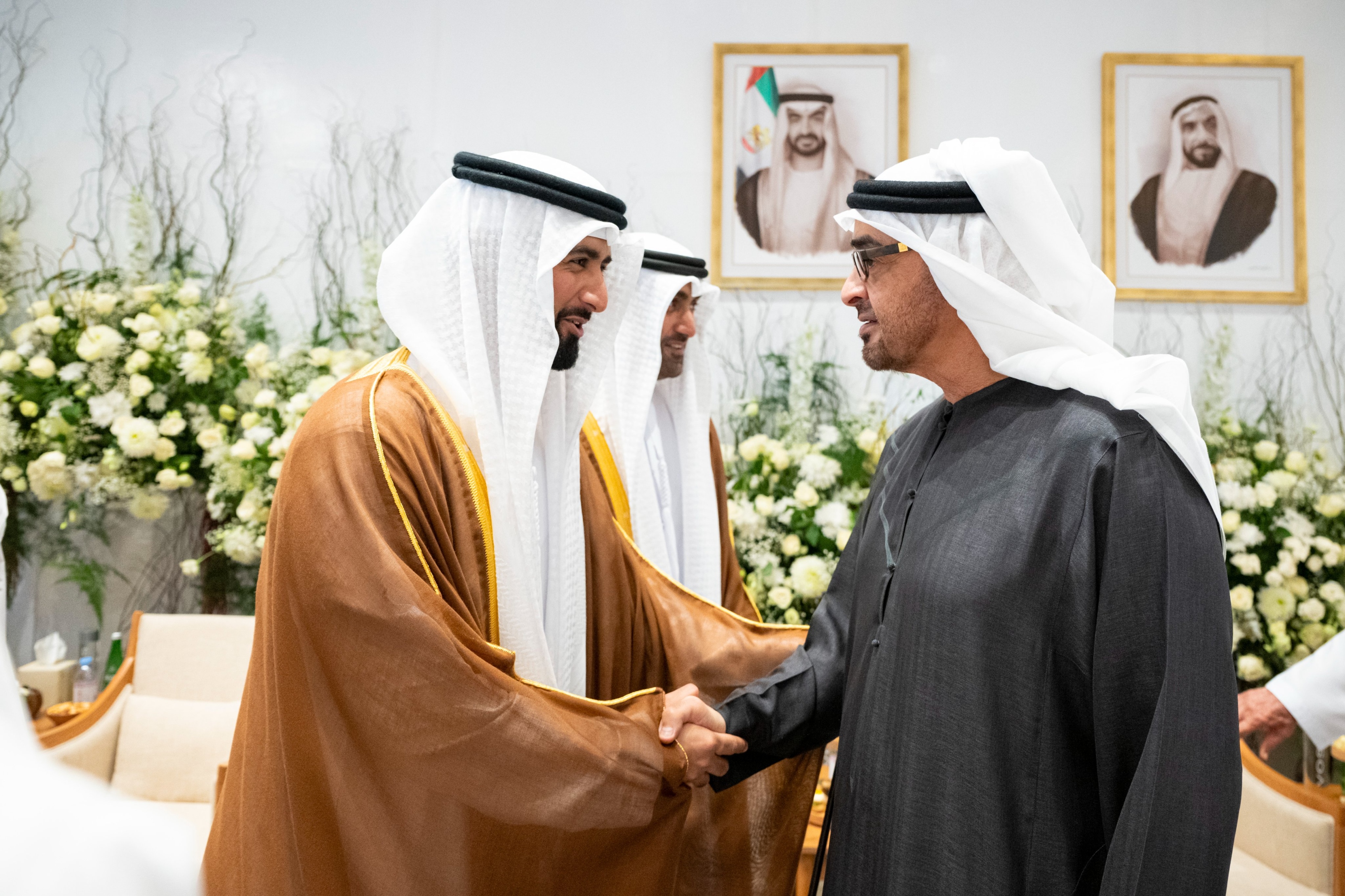 حضر صاحب السمو الشيخ محمد بن زايد آل نهيان رئيس الدولة "حفظه الله" حفل الاستقبال الذي أقامه علي سهيل اليبهوني الظاهري بمناسبة زفاف أنجاله "محمد" إلى كريمة محمد بن صياح بوهليبة المنصوري و"سلطان وسهيل" إلى كريمتي محمد بن بيات منيف المنصوري.