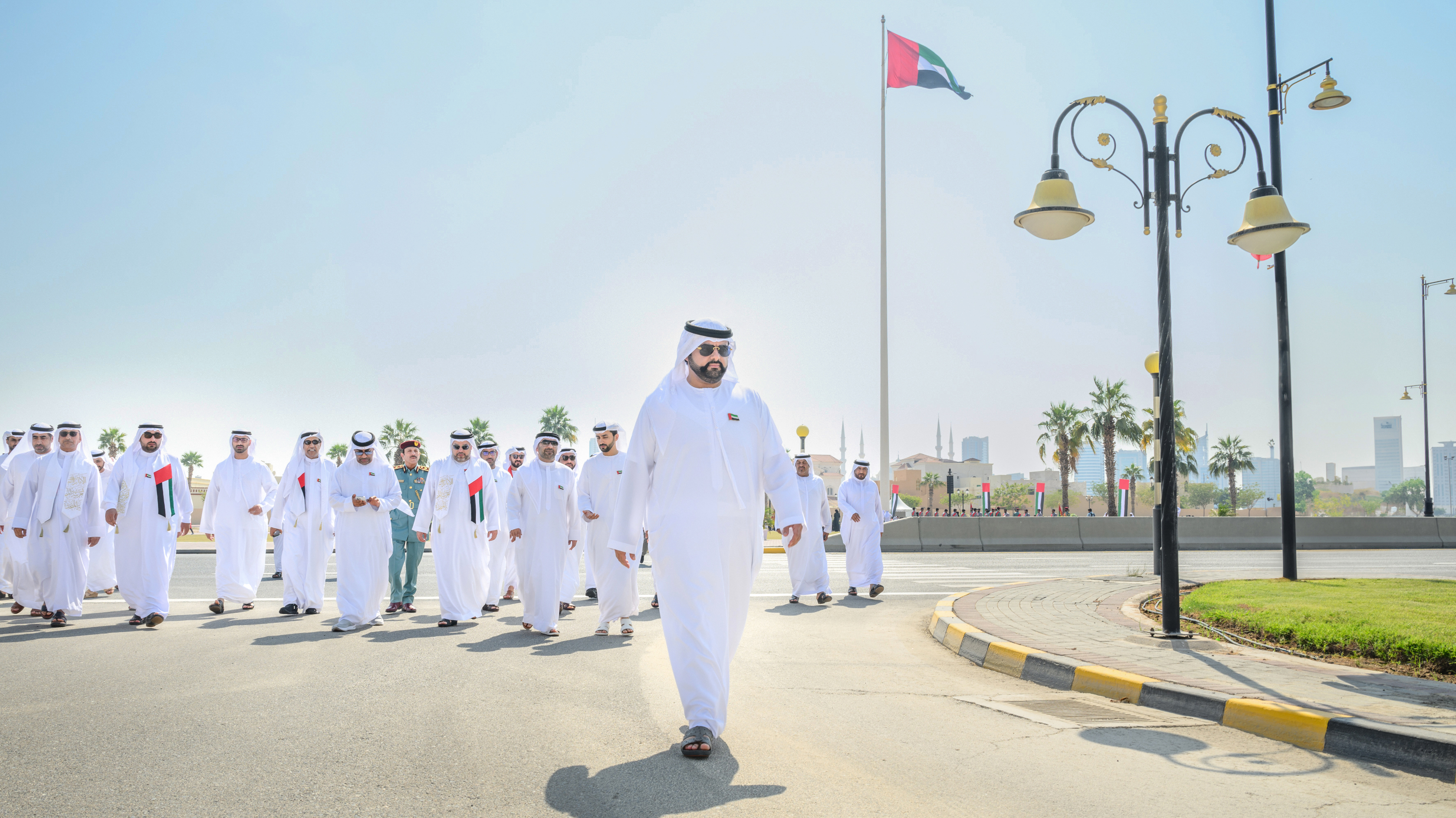جاء ذلك خلال رفع سموه، علم دولة الإمارات في احتفالية يوم العلَم، في الساحة الأمامية لقصر الرميلة بإمارة الفجيرة، بحضور سمو الشيخ الدكتور راشد بن حمد الشرقي، رئيس هيئة الفجيرة للثقافة والإعلام، وسمو الشيخ مكتوم بن حمد الشرقي، والشيخ سيف بن حمد بن سيف الشرقي، رئيس هيئة المنطقة الحرة بالفجيرة، والشيخ أحمد بن حمد بن سيف الشرقي، والشيخ سلطان بن صالح بن محمد الشرقي.