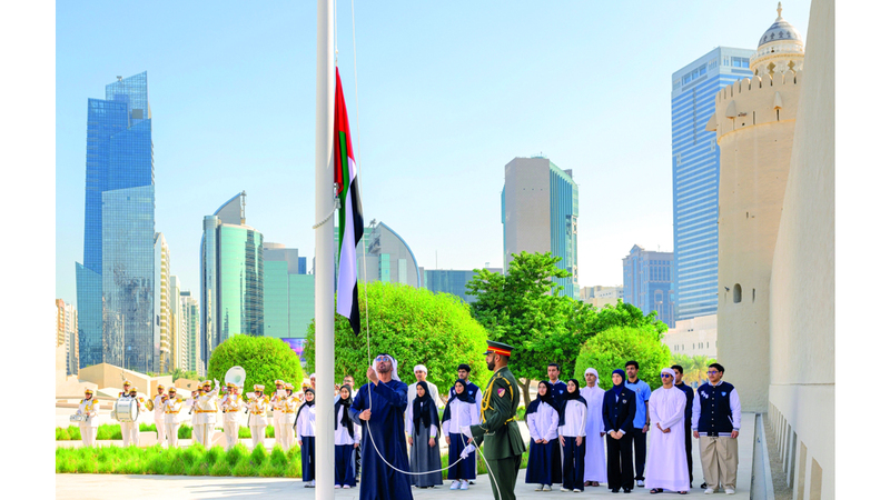 ورافق مراسم رفع العَلَم، عزف السلام الوطني لدولة الإمارات، بمشاركة مجموعة من طلبة المدارس المتفوقين من مختلف أنحاء الدولة.
