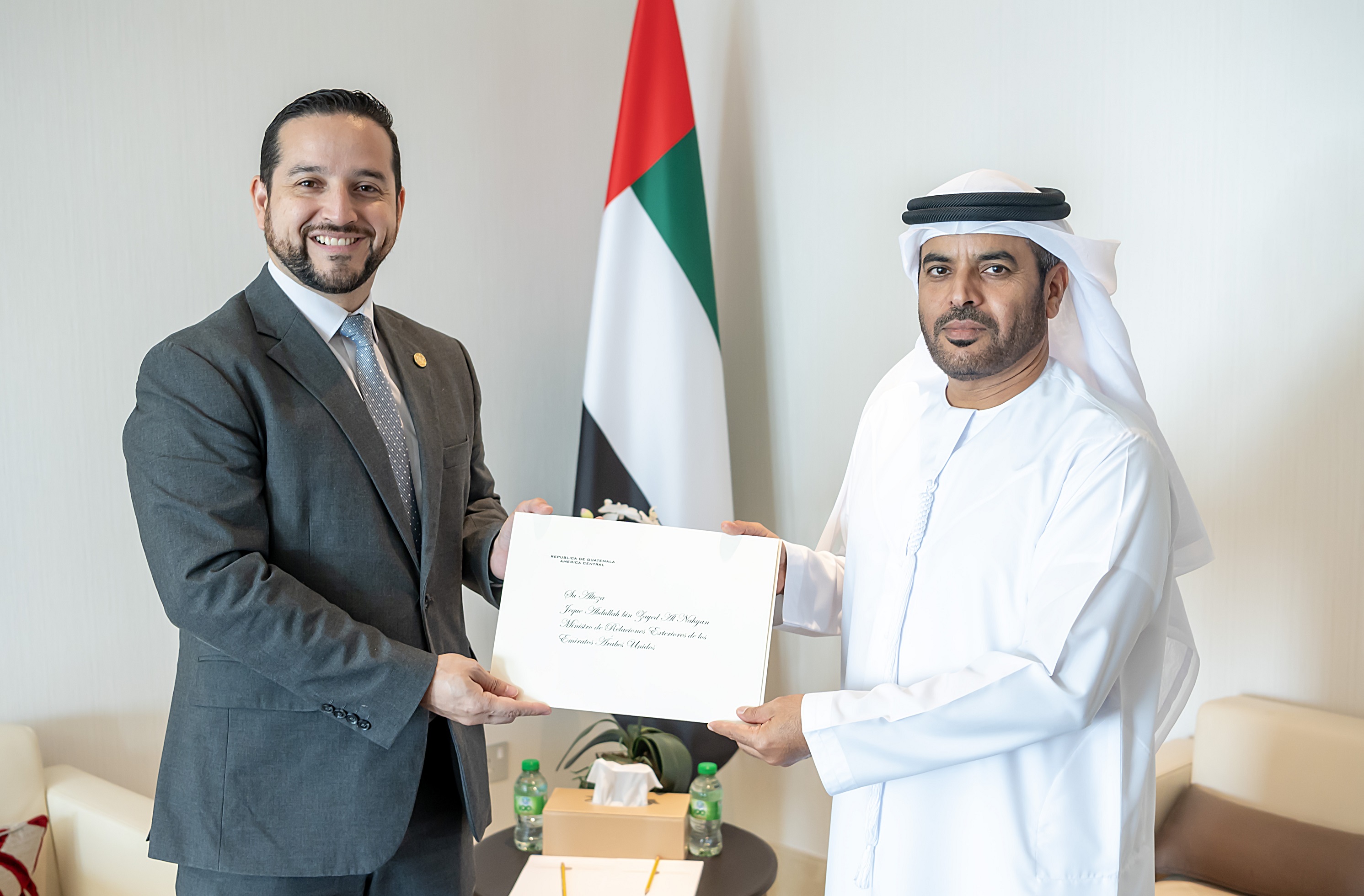 تسلم سعادة سيف عبدالله الشامسي، وكيل وزارة مساعد لشؤون المراسم في وزارة الخارجية، نسخة من أوراق اعتماد سعادة خورخى رافايل ارشيلا رويز، السفير الجديد لجمهورية غواتيمالا لدى الدولة.