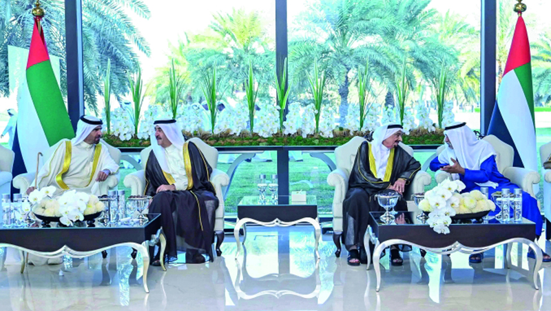 وتخللت حفل الاستقبال عروض من الفنون الشعبية الإماراتية، واللوحات التراثية، والأهازيج المتنوّعة.