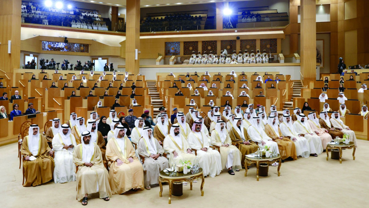 نيابةً عن صاحب السموّ الشيخ محمد بن زايد آل نهيان، رئيس الدولة، حفظه الله، افتتح صاحب السموّ الشيخ محمد بن راشد آل مكتوم، نائب رئيس الدولة رئيس مجلس الوزراء حاكم دبي، رعاه الله، بحضور سموّ الشيخ منصور بن زايد آل نهيان، نائب رئيس الدولة نائب رئيس مجلس الوزراء رئيس ديوان الرئاسة، أمس، دور الانعقاد العادي الثاني من الفصل التشريعي الـ18 للمجلس الوطني الاتحادي.