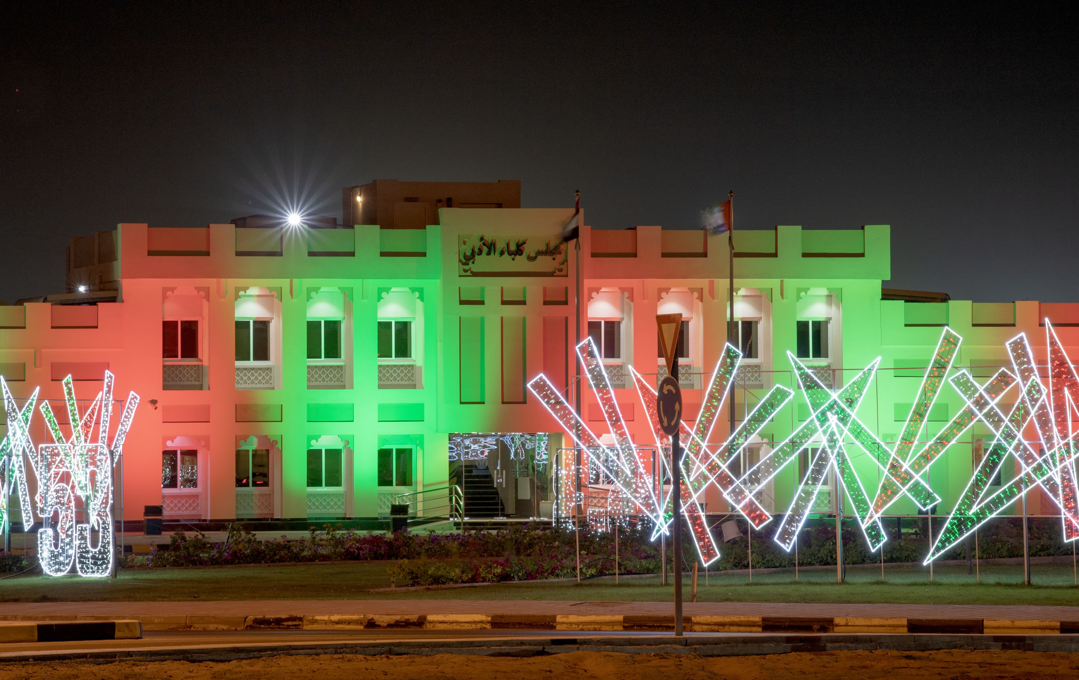 وتزينت مباني الدوائر الرسمية والطرقات والميادين العامة ومراكز التسوق بعلم دولة الإمارات، وبمختلف أنواع الزينة التي تعبر عن المناسبة الوطنية الغالية.