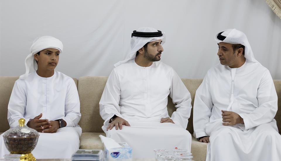 حمدان بن محمد يقدم واجب العزاء في مبارك محمد المطيوعي المنصوري