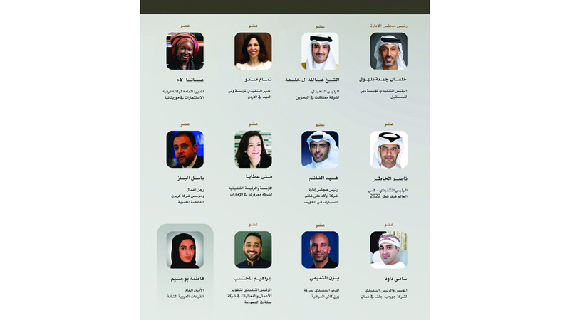 ويضم مجلس إدارة «القيادات العربية الشابة»، برئاسة الرئيس التنفيذي لمؤسسة دبي للمستقبل، خلفان جمعة بلهول، كلاً من الشيخ عبدالله آل خليفة، من مملكة البحرين، وتمام منكو، من المملكة الأردنية الهاشمية، وفهد الغانم، من دولة الكويت، وآيساتا لام، من موريتانيا، وإبراهيم المحتسب، من المملكة العربية السعودية، ومنى عطايا، من فلسطين، وباسل الباز من مصر، ويزن التميمي، من العراق، وناصر الخاطر من قطر، وسامي داود، من سلطنة عُمان، بينما تم اعتماد فاطمة راشد بوجسيم، أميناً عاماً للقيادات العربية الشابة.