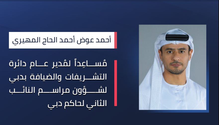 حمدان بن محمد يُعين أحمد عوض أحمد الحاج المهيري مُساعِداً لمُدير عام دائرة التشريفات والضيافة بدبي