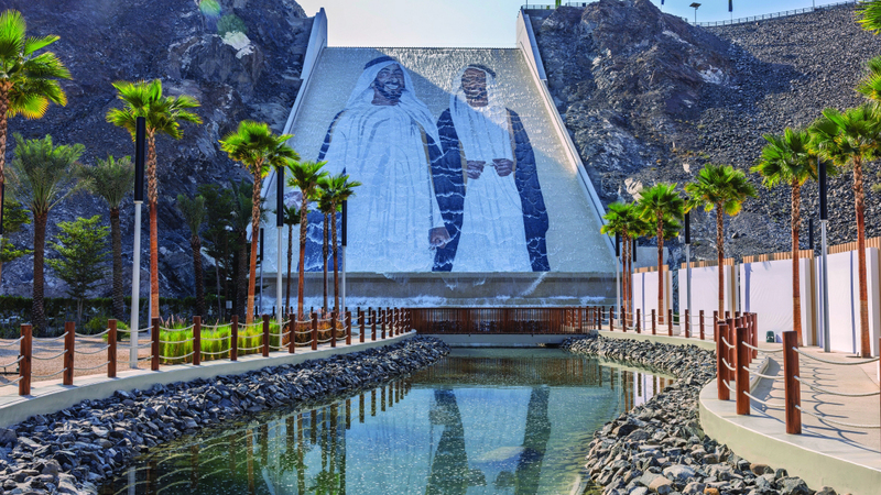 واستمع سموّه من سعيد محمد الطاير إلى شروحات حول المشروع الذي يأتي في إطار خطة التنمية الشاملة لمنطقة حتّا، التي أطلقها سموّه لتطوير المنطقة، وتعزيز أداء مختلف القطاعات الاقتصادية والاجتماعية فيها، حيث تم الاستفادة من منحدر السد في إبداع جدارية الفسيفساء التي تحمل صورة المغفور لهما بإذن الله تعالى، الشيخ زايد بن سلطان آل نهيان والشيخ راشد بن سعيد آل مكتوم، طيّب الله ثراهما، وتُعد الأكبر عالمياً، إذ تتكون من أكثر من 1.2 مليون قطعة من الرخام الطبيعي.