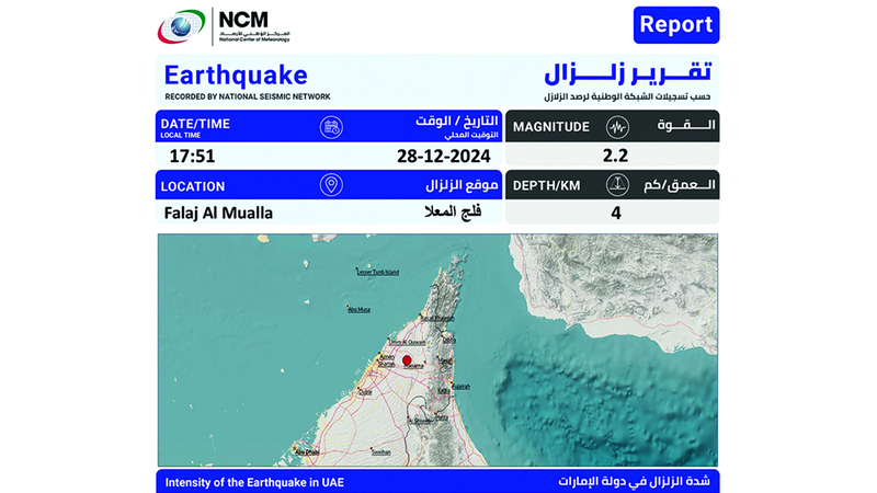 «الوطني للأرصاد» أوضح أن الهزة الأرضية لم تكن محسوسة. وام