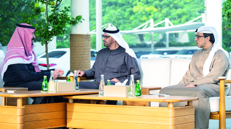 وبحث صاحب السمو الشيخ محمد بن زايد آل نهيان، وصاحب السمو الملكي الأمير خالد بن سلمان، العلاقات الأخوية الراسخة بين البلدين، ومسارات تعاونهما في جميع المجالات، بما يدعم مصالحهما المشتركة، ويحقق تطلعات شعبيهما نحو التنمية والازدهار.